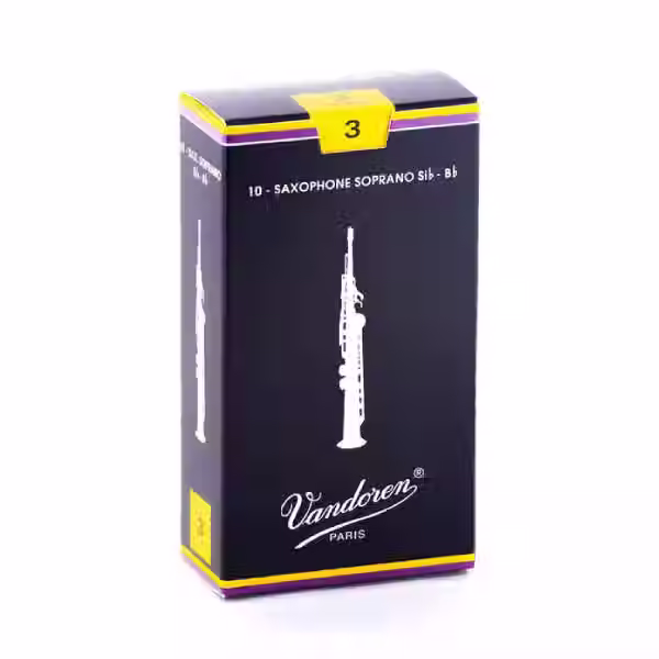 Caja con 10 Cañas tradicionales para Saxofón Soprano Si bemol (Sib-Bb) No3 Marca Vandoren.